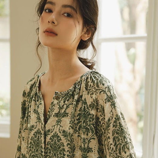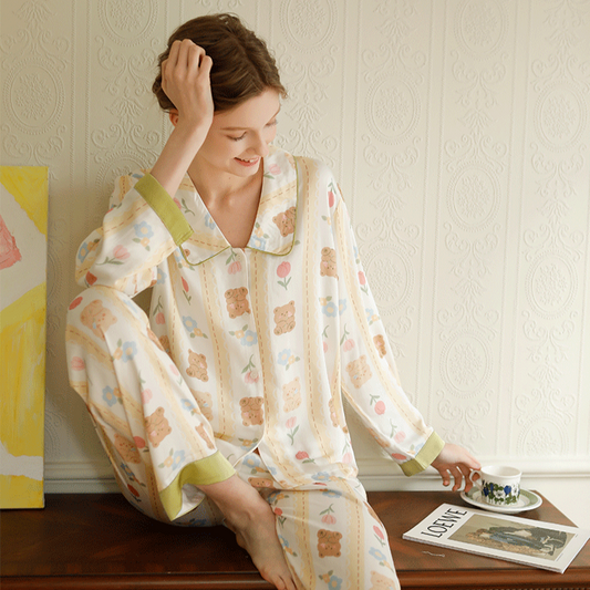 レトロ文学的なテンセルプリントのパジャマ